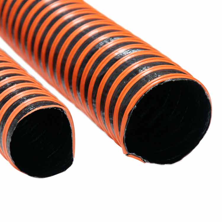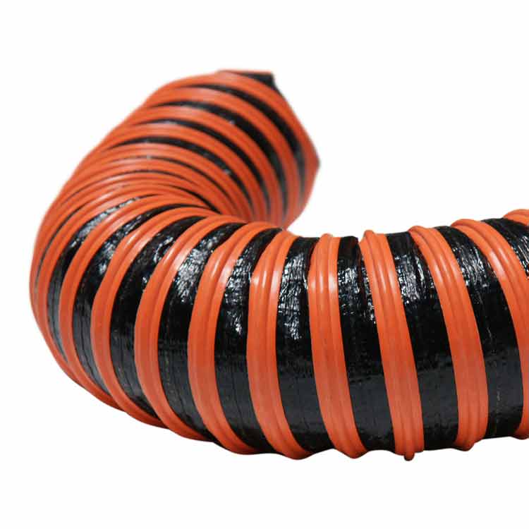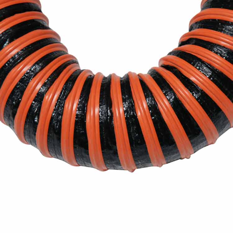 The “Poly Fabric Flex – 2 ply” fabric ducting has a working temperature of – 20 to +180 degrees Fahrenheit. This gives users a wider range of temperature resistance in an affordable non-high temp hose! Clogs are prevented since this flexible hose has excellent flow characteristics with low friction loss because of the smooth internal structure. This industrial hose is constructed with UL 94 V-0 flame retardant hose material and is ideal for air, dust, fume, and light material movement.