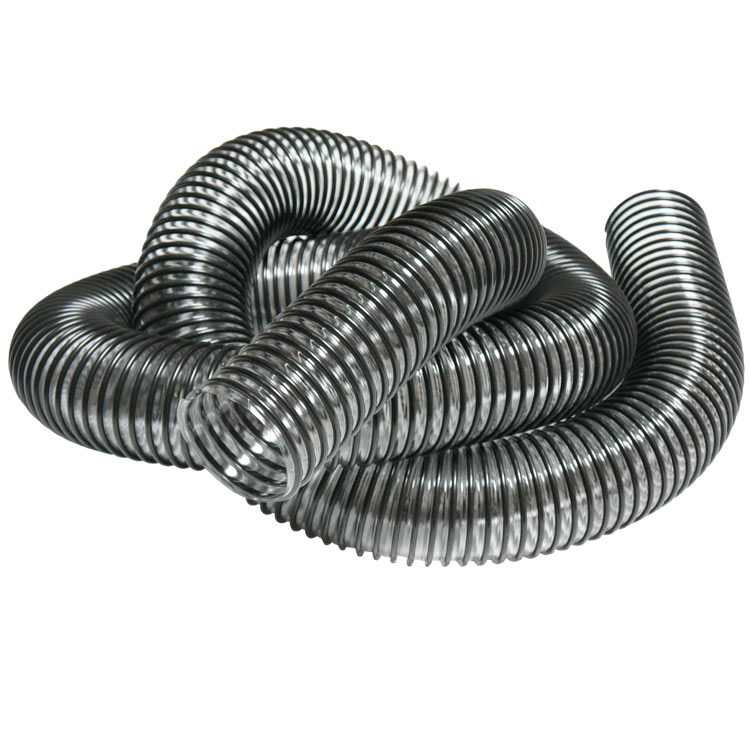 The “Smooth-Tube PVC” hose is a medium-weight PVC flex ducting that is reinforced by a rigid external PVC helix making for a clear flexible hose. It combines durability and flexibility into one cost-effective package! These PVC hoses are recommended for use in applications involving air, light materials, and dust movement.
