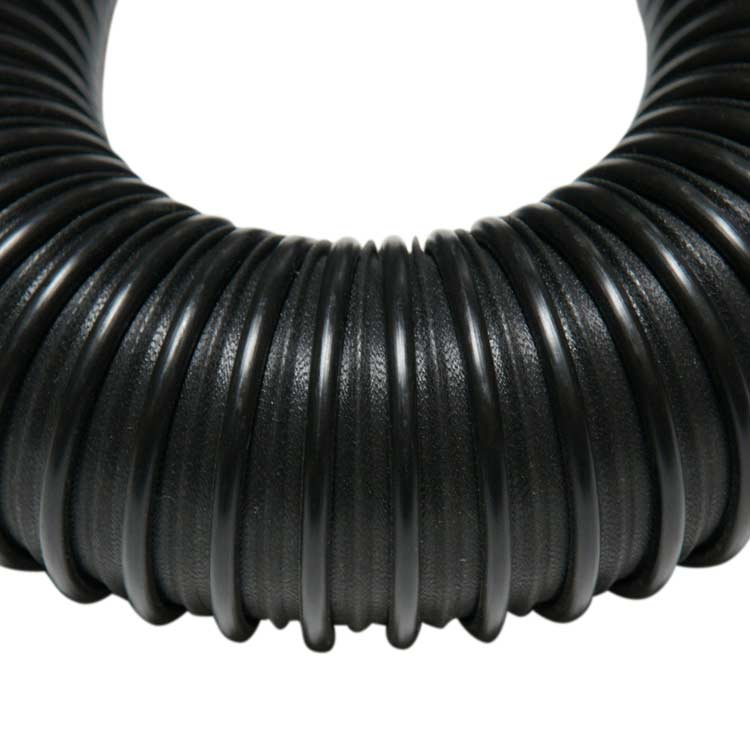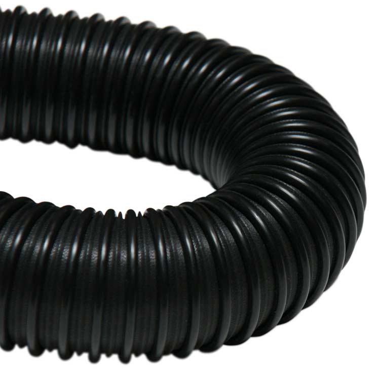 This hose is made with lightweight black polyethylene wall hose construction reinforced with an integral polyethylene helix. The “PE Flex Ultra Flexible” hose is extremely flexible duct hose designed for medium-duty air and fume applications. This flex ducting has the benefits of being both extremely lightweight and flexible because of the polyethylene materials used in the construction of the flexible air ducts. Polyethylene (abbreviated PE) is the most common plastic in production, and this makes for PE flexible hose products that are inexpensive and readily available. The durability of PE flexible hose products is especially true in outdoor applications where this product will outlast most rubber and other thermoplastics!