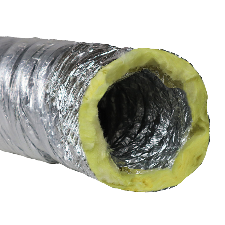 Why use insulated ductwork as air conditioning duct? Insulation works because it prevents heat transference into and out of a duct. As a rule, heated air flows from higher temperature areas into areas occupied by cooler temperature air. This movement continues until the temperature of the two spaces is the same. When moving conditioned air through a duct, one way to prevent this is by using insulation wraps around the ducts so that it keeps heat from moving through the duct’s walls. Having an R-value of 6 is a great resource when ducting is used as ducts for air conditioning and the “HVAC Insulated-Flex R-6” has this valued feature. When this air conditioner duct is moving heated air or cooled air through its body, it will reduce heat loss due to its R-value of 6. The thicker and the denser the insulation wrap, the less likely that the temperatures within the flexible ducting can be affected negatively. In general, insulated flexible ductwork operates by adding thick duct wrap that slows down that heat flow from the exterior of the duct into the interior of the hose. Increasing the R-value of the insulation will slow down the heat transfer, since higher R-value ducts have thicker and denser wrapping.