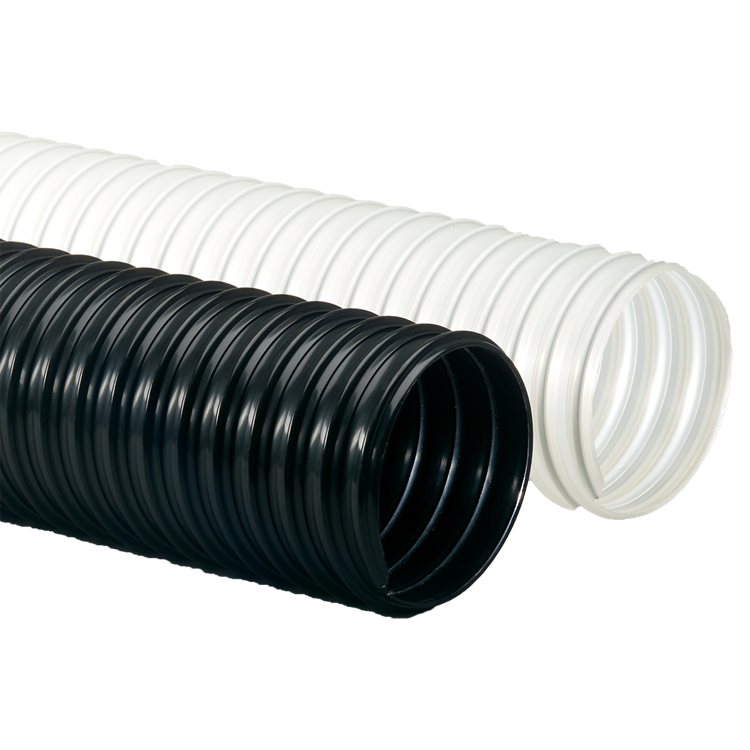 This polyurethane hose is sold in 25 ft coils and comes with plain cut ends. The flexible heavy-duty hose is available in clear and black. The clear version of this product is made from FDA acceptable materials making it ideal for food and drug transfer applications. This product is available in sizes ranging from 2 inches to 24 inches. The hose materials and heavy-duty construction of this product make it an excellent choice for harsh environments such as agriculture, paper mills, powder and bulk, parking lot sweepers and other heavy-duty applications. If you have questions or need additional information, please do not hesitate to give one of our ducting specialists a call today!