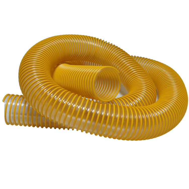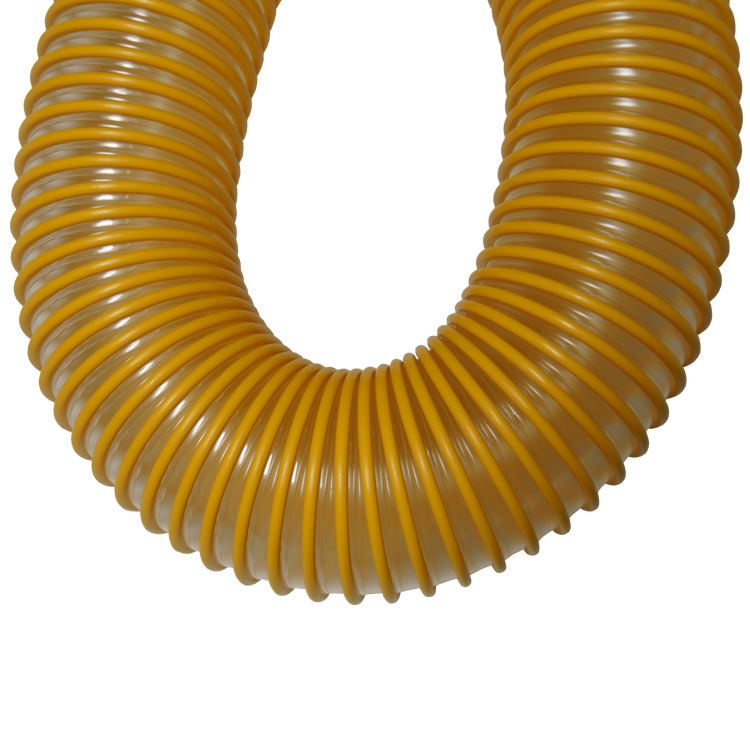 The “Smooth-Tube PU” material handling hose is a medium weight duct that is made up of polyurethane film. A great hose for dust collection and other material handling applications, it features a smooth interior that maximizes the level of flow in the tube. It is a very abrasion resistant hose thanks to its polyurethane makeup and its external wearstrip. Overall, this flexible ductwork is a great choice for your dust and material handling needs.