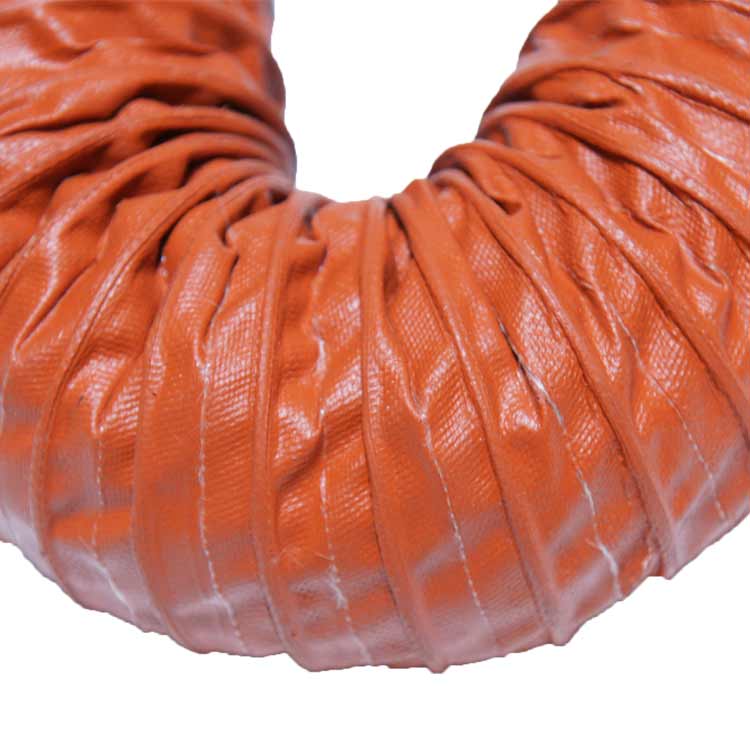 The “Silico-Fiberglass 550” flex duct is offered in longer lengths than traditional mandrel built hoses. This air vent duct is offered in a standard length of both 12 & 25 feet with plain cut ends. Specialty sized cuffs are available for the ends of this fiberglass hose for an additional cost. This flexible duct is available in several internal diameter sizes ranging from 2 inches to 12 inches. Tolerances on the ID size are -0.00 to +0.125 for 6 inches and under and -0.00 to +0.250 for 8 inches and over. The versatility of this hi temp hose makes it a great choice for a variety of applications, such as industrial dry cleaning, vehicle exhaust systems, rocket support ducts, garage exhausts, and other high temperature applications. If you have any questions or need additional information about “Silico-Fiberglass 550”, please do not hesitate to give one of our ducting specialists a call today!