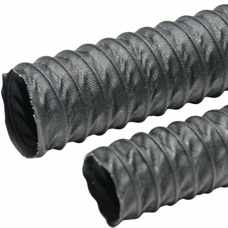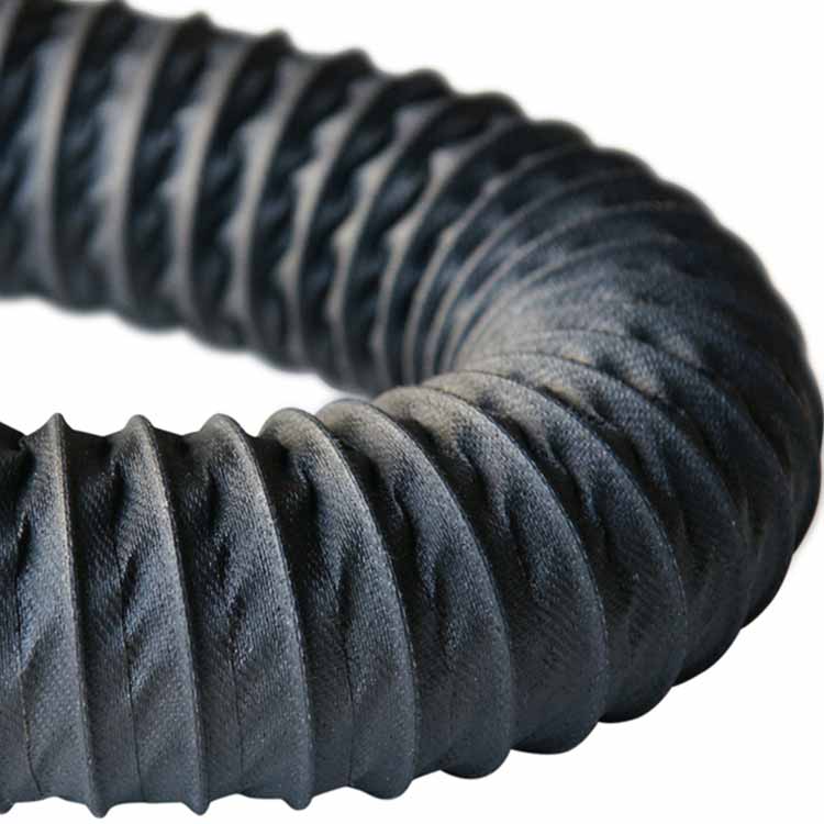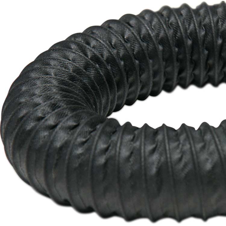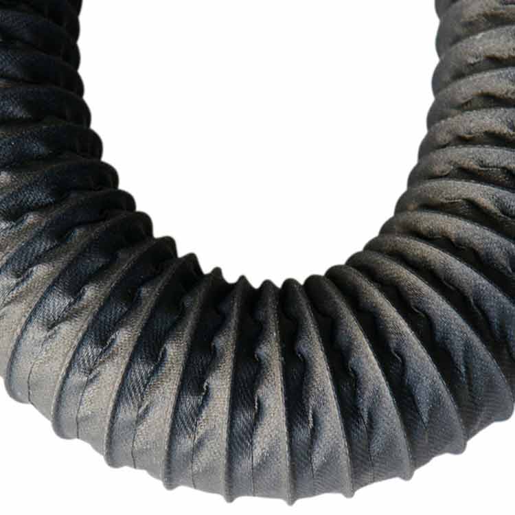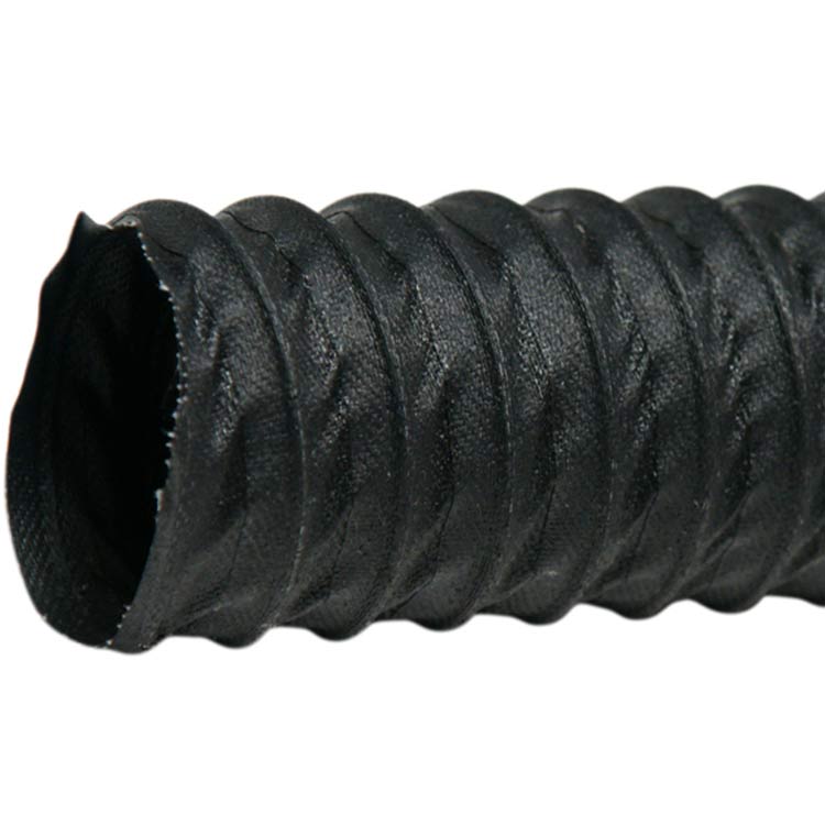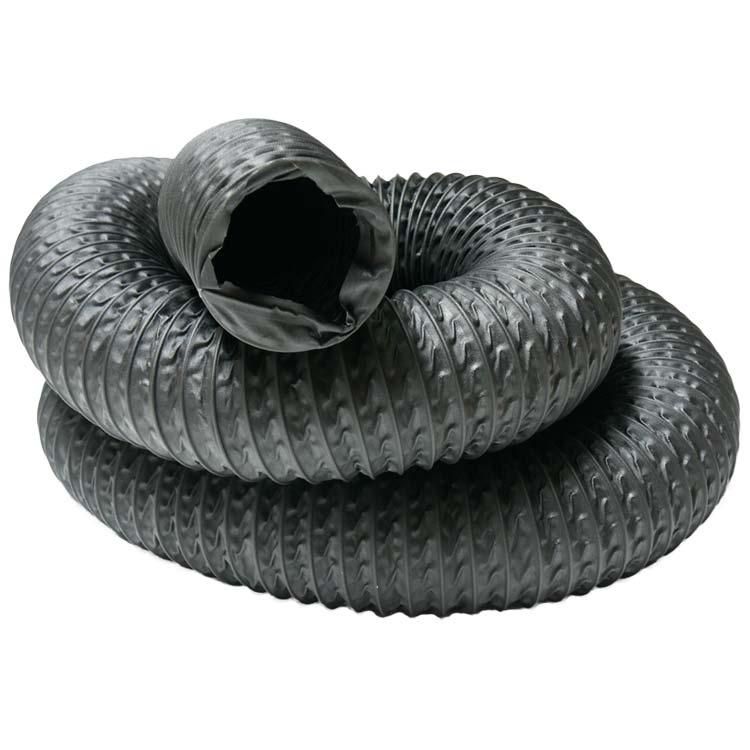 The “Acrylic Flex 325” high temperature hose is an extremely versatile, high temperature, acrylic flexible duct intended for use in a variety of industrial applications. This black flexible hose is constructed from single-ply acrylic coated polyester fabric. The durable material is reinforced with a spring steel wire helix for added strength, reinforcement and flexibility, allowing it to be easily utilized in a variety of settings. This hose is an excellent choice for overhead vehicle exhaust systems. The most effective method of removing vehicle exhaust fumes in garages is capturing it at the source. This abrasion resistant flexible hose makes it a durable option in this arena.