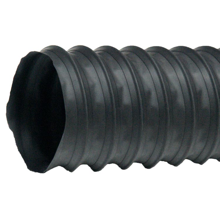 This exhaust hose is reinforced with a spring steel wire helix that serves to provide protection and durability for the hose. “Thermoplastic Flex Light-Duty” is an industrial duct and is able to operate at both high and low temperatures. The operating temperature of this flexible rubber hose ranges from -40 degrees to +275 degrees Fahrenheit, which is greater than other flexible rubber hoses. Also, the TPE materials of this flexible ducting make it extremely compressible, allowing for easy storage and installation in tight spaces. In sizes 4 inches and up, this product has an 8 to 1 compression ratio, meaning that an 8-foot length of this flexible rubber hose can be compressed down to a foot!