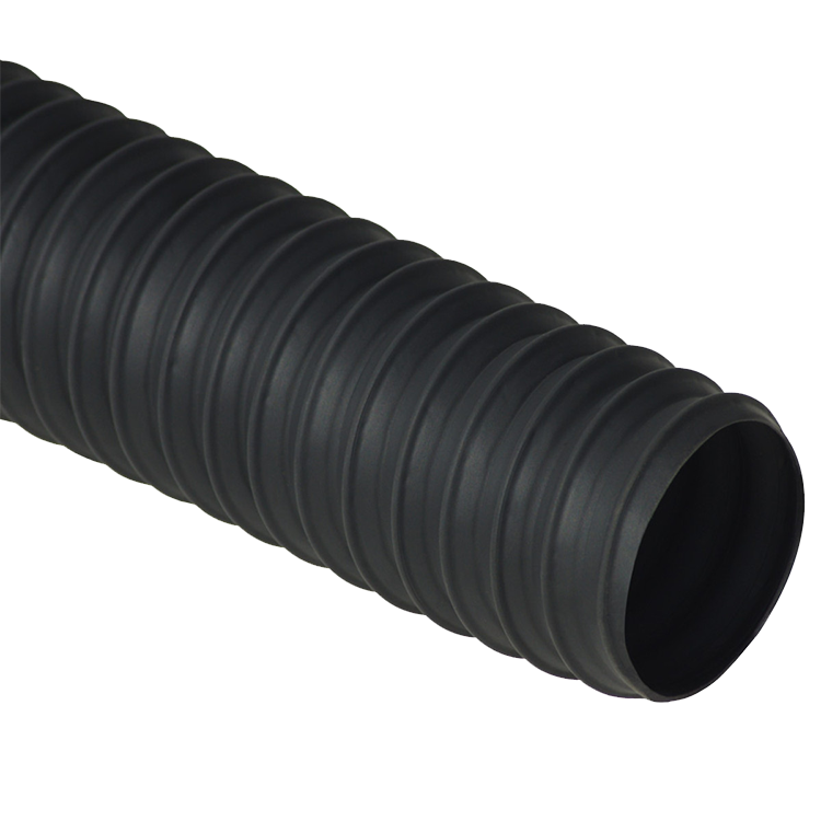 “Thermoplastic Flex Light-Duty” is a lightweight flexible rubber hose that is recommended for light-duty air and material handling applications. This exhaust hose is made from medium weight thermoplastic rubber reinforced with a spring steel wire helix. Thermoplastic rubbers are a class of copolymers that possess both thermoplastic and elastomeric properties, generally made from a mix of plastic and rubber. The thermoplastic rubber material gives this product great chemical resistance and also provides a longer life in extreme hot and cold environments over standard rubber. The thermoplastic composition also provides excellent moisture, UV, and ozone protection to this industrial duct. Choosing this flexible ducting will offer the following benefits: excellent UV resistance, excellent flexibility, resistance to microbial attack, minimal moisture absorption, and broad temperature operating range. This product is also recyclable.