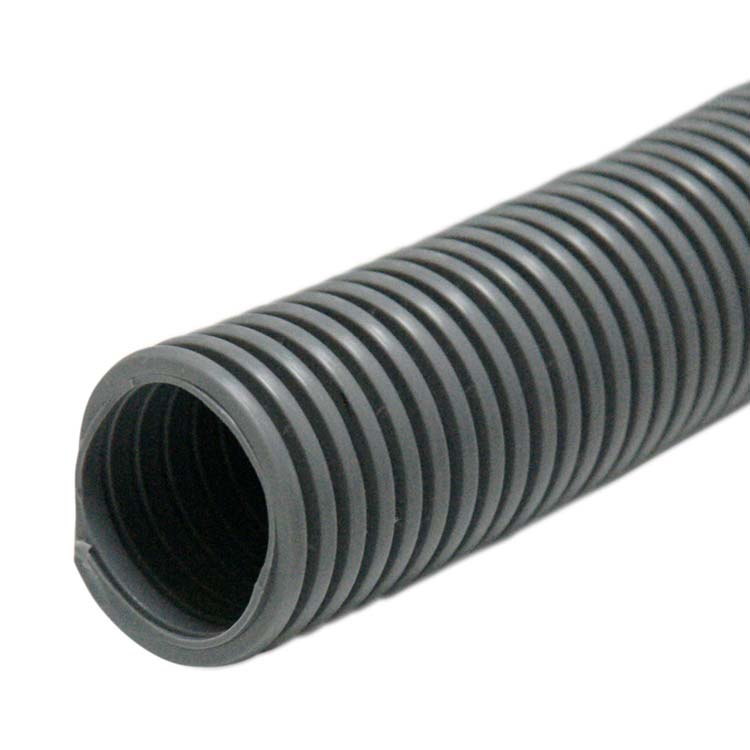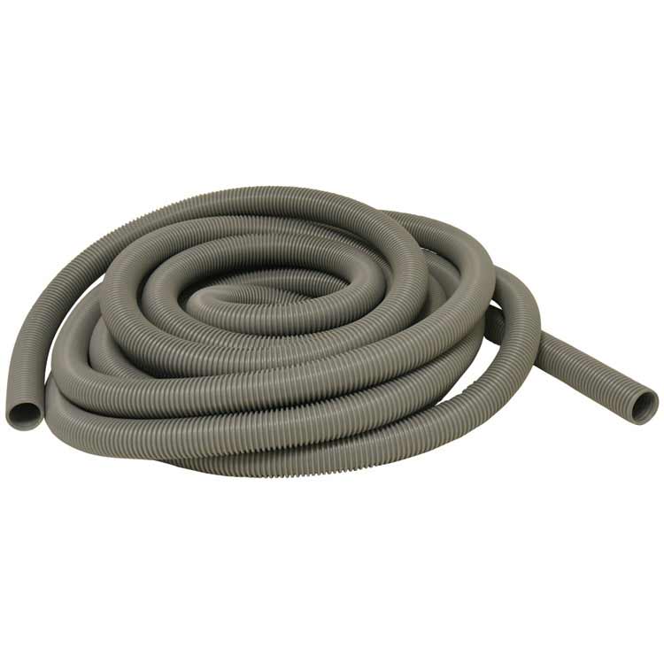 The “PE Flex Vaculoop” lightweight flexible drain hose is available in internal diameter sizes ranging from 1 to 2 inch. The internal diameter refers to a straight line passing from side to side through the center of a circle; in this case the mouth of the flex pipe. This small diameter provides you with a vacuum hose that is great for a variety of application such as conduit wiring, lightweight vacuum applications and drain hosing. This hose meets IAMPO compliance and is listed by TEI-LS for use in RV plumbing systems. This flexible drain hose is available in a gray color in standard 50-foot sections with a plain cut end finish. If you have questions or need additional information please do not hesitate to give one of our ducting specialists a call today.