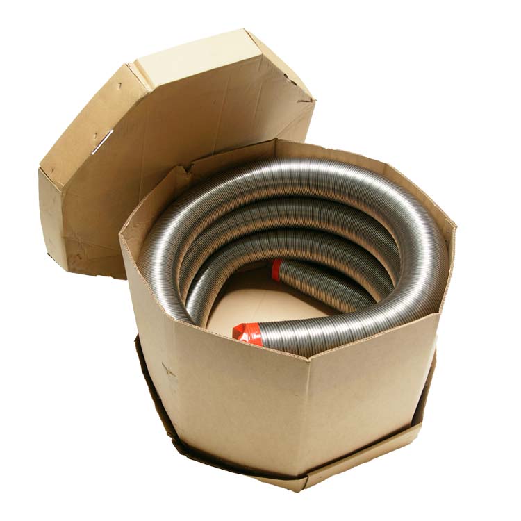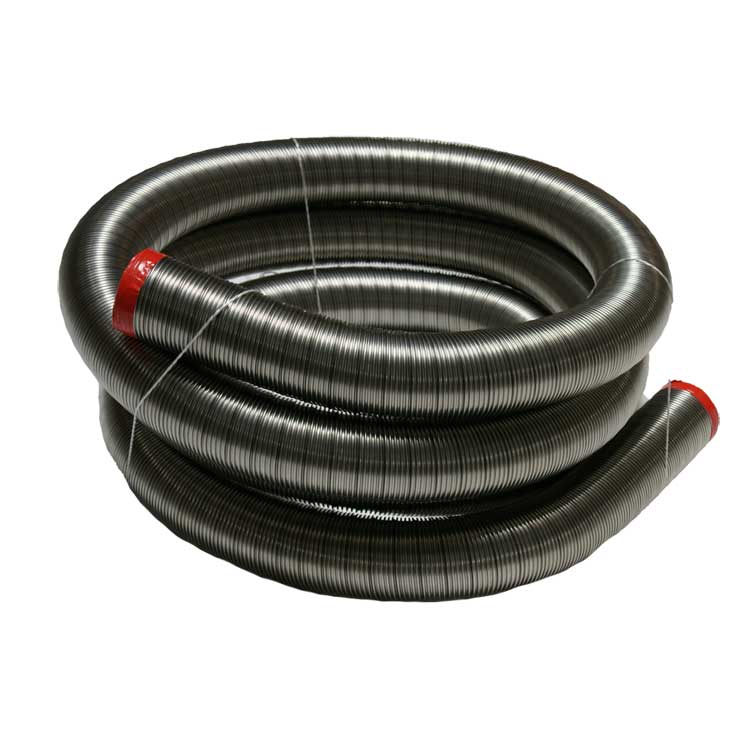 The “SSti-Flex 1650” flexible stainless hose comes in a standard length of both 15 ft (9 to 12 inch size) and 25 ft (3 to 8 inch) with plain cut ends. The 3 inch and 4 inch diameters can ship by ground if ordered in 25-foot coils. The wall thickness of this stainless duct is measured at 0.006 inches. These stainless steel hoses have an extremely wide range of applications involving air, dust, fume, and materials such as A/C ventilation, pharmaceuticals, paper trim conduits, welding, oil mist transfer, and high temperature applications. If you have questions or need additional information, please do not hesitate to give one of our ducting specialists a call today!
