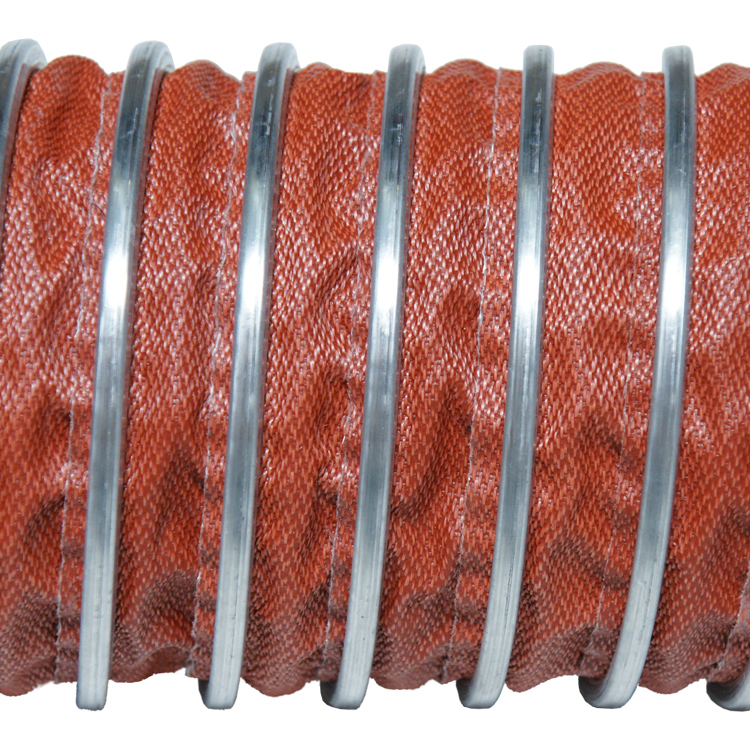 This flexible exhaust hose is able to endure physically abrasive conditions. This is thanks to a coated steel wire that frames the body of the hose. The fabric is locked around the wire by a metal clip. This metal clip acts as a wearstrip. A wearstrip is important to have on flex hoses because they offer a better level of resistance to physical abrasions. A flexible duct may be subjected to harm from external conditions, such as being dragged along a rough surface or being hit by loose flying particles like woodchips and pebbles. The metallic wearstrip gives the body of this high temperature flexible hose more durability in physically abrasive conditions. For further protection to protect the wire helix and any equipment attached to the hose, it is also available with a polyurethane clip.