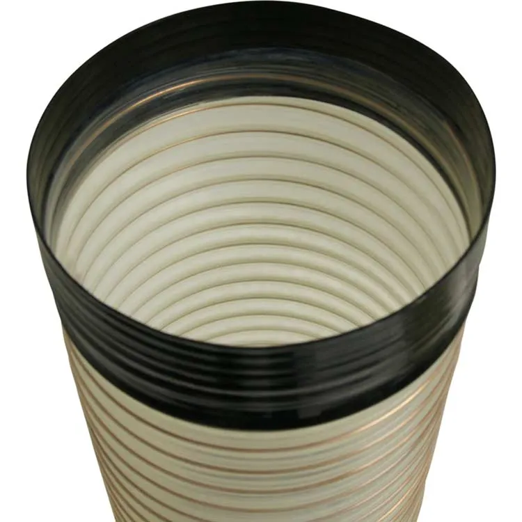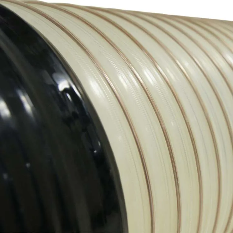 The sturdy flexible hose is constructed using heavy-duty clear polyurethane. The reinforced walls of the extraction hose are made to support a coated spring steel wire helix. This reinforced steel spring in the street sweeper hose provides maximum flexibility, abrasion resistance and efficient flow characteristics. The spring design allows the multifaceted abrasion resistant hose to compress easily during its use. Each hose comes complete with three-inch black polyurethane cuffs located on either end of the flex duct hose. Each extraction hose comes with standard polyurethane cuffs making for easy installation onto the sweeper head.