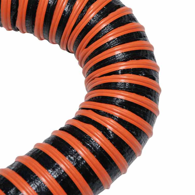 This series of fire rated ducts are made from PVC vinyl coated polyester fabric hose reinforced with a spring steel wire helix & external PVC wearstrip. The ductwork’s wearstrip gives additional external abrasion & drag resistance, which is useful if the hose is being moved around in rough environments. Since it is made with PVC, these fire-retardant hoses offer great chemical & moisture resistance
