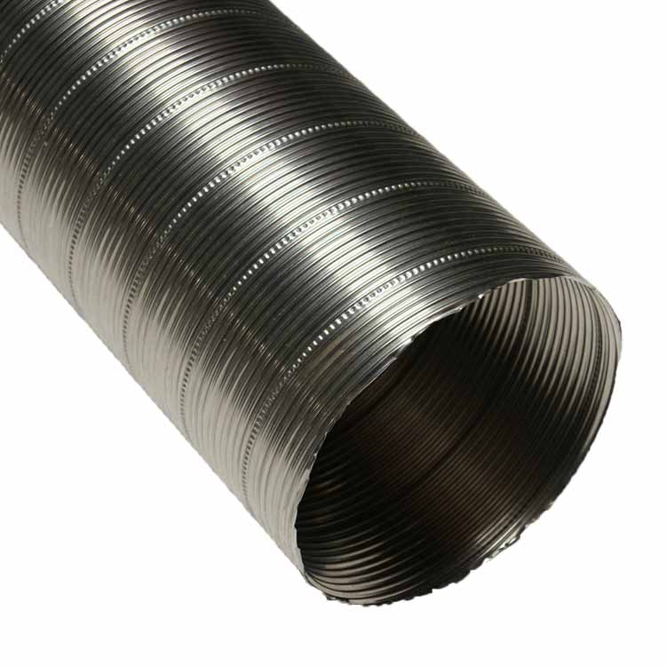 Semi-rigid metal ducts are the only kitchen range hood exhaust duct products that should be considered. Metals like stainless and aluminum will not burn, therefore are the safest products for use in kitchens. The possibility of fires in home or commercial kitchens is always present and having range hood ducting that will not promote a fire is of the utmost importance.