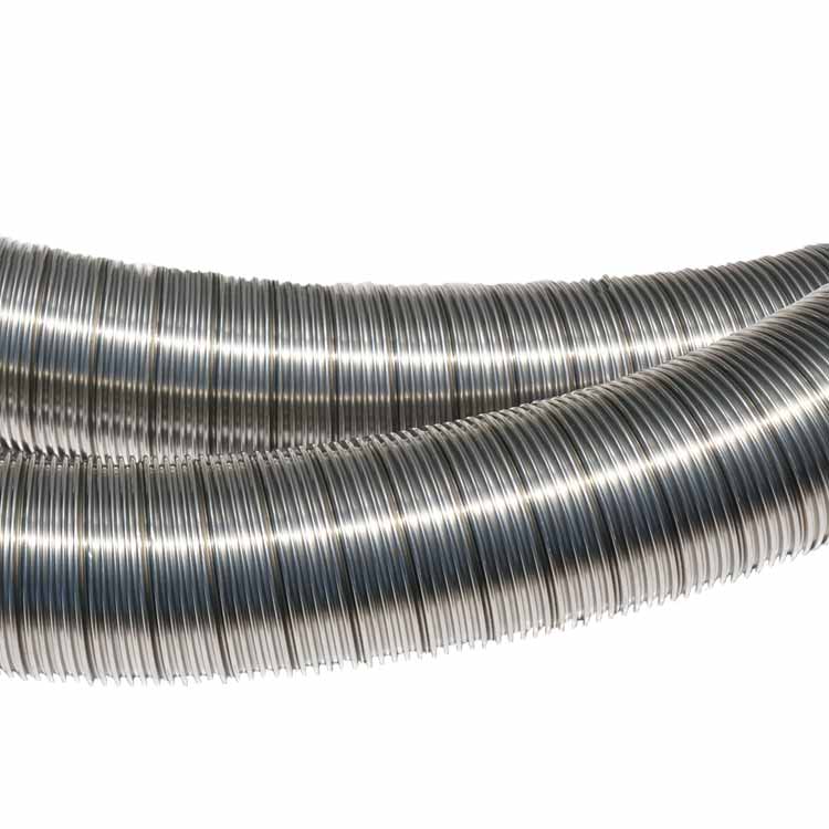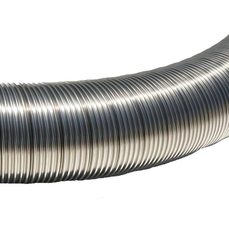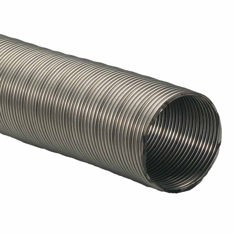 The “SS-Flex 800” is a single-ply helically corrugated stainless steel hose with a four-ply finished seam that is folded flat and crimped, allowing for excellent tightness and strength. Unlike other forms of steel, stainless steel does not readily corrode, rust or stain when it comes into contact with moisture. Stainless steel is essentially low carbon steel, which contains chromium at 10% or more by weight. It is this addition of chromium that gives the steel its unique corrosion resisting properties. This flexible steel hose is also very lightweight allowing for easy installation. The hose’s flexibility allows for this stainless hose to be hand bendable, allowing you to easily create elbows and turns during installation. Because the stainless steel is resistant to weathering, moisture, corrosive fumes, and chemicals, this product exhibits excellent life.