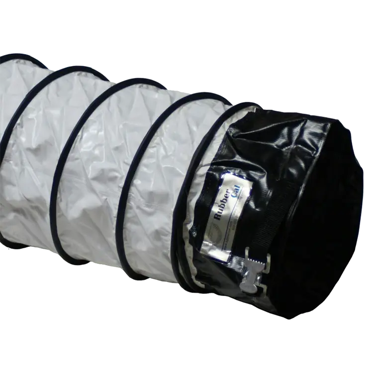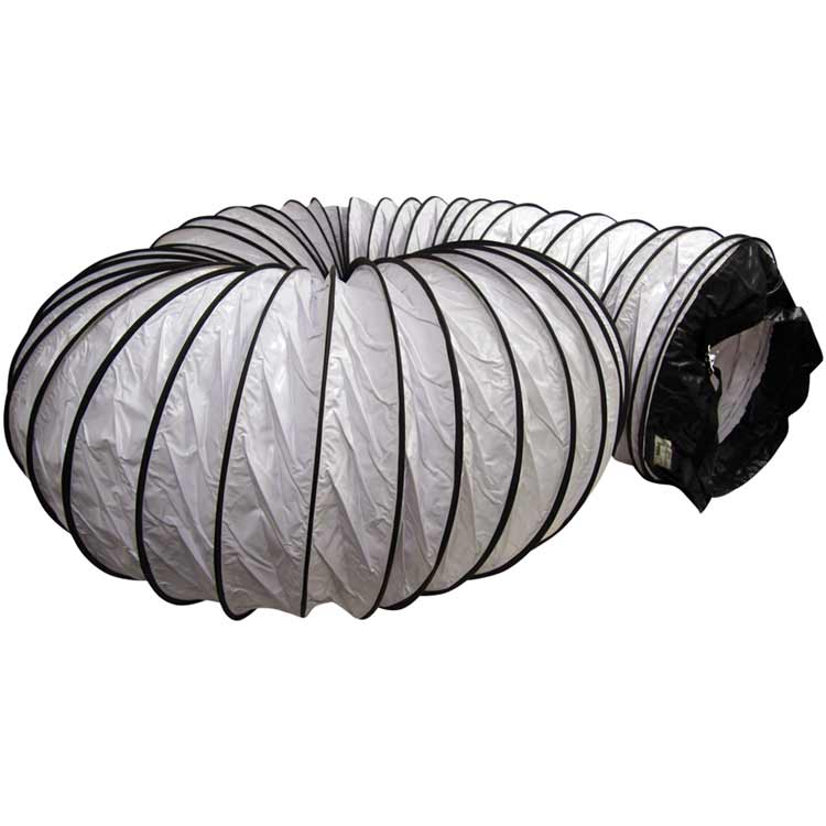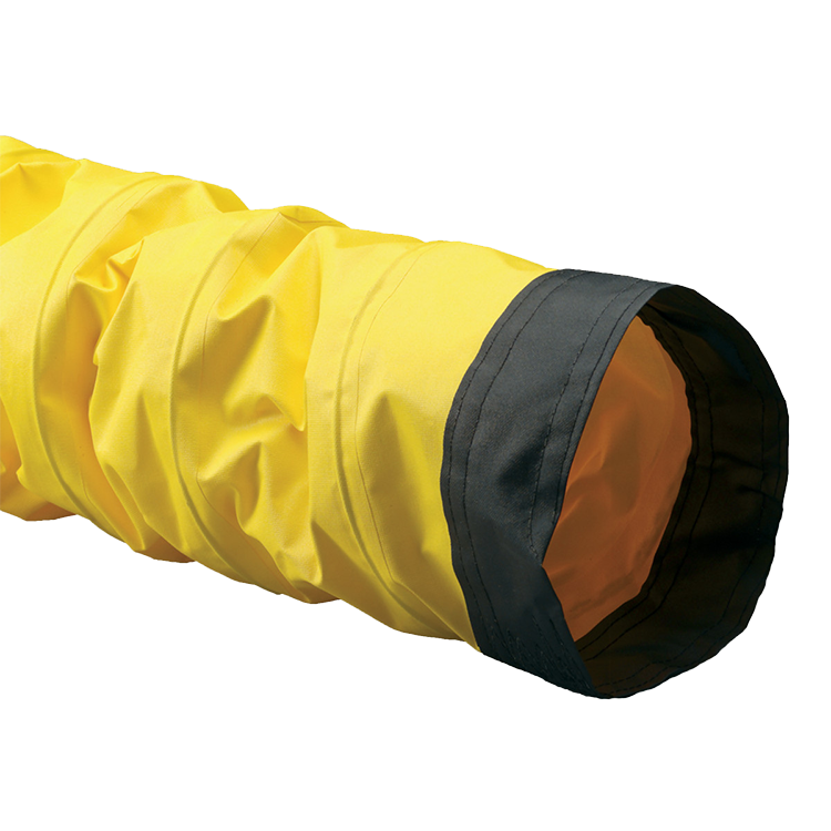 This series of flexible ductwork is made of a PVC vinyl coated polyester fabric hose reinforced with a spring steel wire helix. This flex hose series is a polyester fabric dipped in PVC with an external wearstrip that protects the ducting from exterior abrasion and wear. All Air Ventilator hoses ends have a belted cuffed end for easy installation.