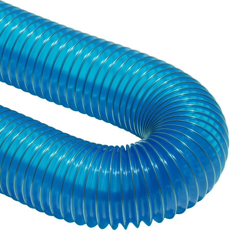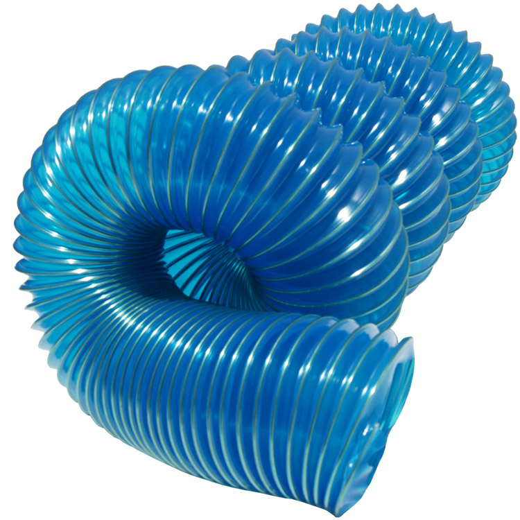This PVC ducting is recommended for light to medium duty applications involving air and dust. Since it is made from chemically resistant PVC material, it can also be used to transfer fumes in pollution control and welding applications. This blue duct can operate in temperatures up to 160° F. PVC is also moderately resistant to moisture, therefore making this PVC suction hose good for use in case there is any light moisture present within the vicinity. Affordable, adaptable, and dependable, these are ideal for use as air ventilation or dust collection hoses. This PVC ducting can operate in temperatures up to 160° F.