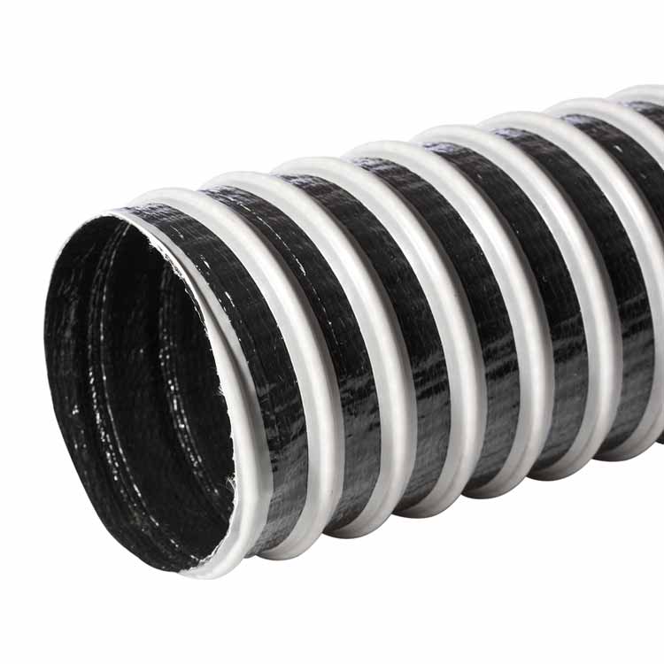 The “Urethane Flex Static Dissipative” material ducting hose is constructed to work in a wide range of temperature applications. This product is designed to work in temperatures ranging from a low of -65 to a high of +225 degrees Fahrenheit. The high temperature tolerance, electrostatic discharge resistance, chemical resistance, and tear strength qualities given by the hose materials make this a great flex duct for most abrasive environments.
