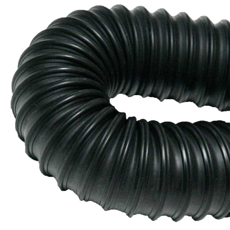 The second type of rubber ducting product we have available are thermoplastic rubber hoses. These hoses are great industrial rubber hoses because of their fantastic durability and extra resistance to UV light and ozone damage. In addition to protection from ozone and UV damage, the industrial rubber hoses also feature moderate resistance to harsh chemicals. The thermoplastic hoses are a great option for applications that involve temperatures up to 275 degrees Fahrenheit. Even at high temperatures these ducting products retain their flexibility and durability. We stock this hose is sizes from 2-inch diameter to 12-inch ID and can ship them within 24-hours of an order.