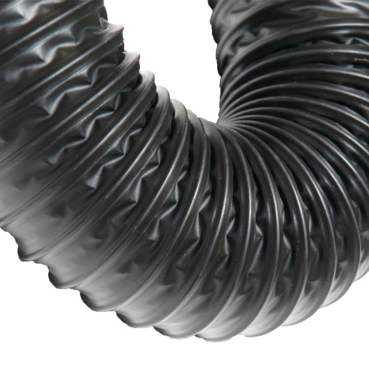 The “Smooth-Tube TPR” flexible hoses are medium weight hose products that are great for use in fume, light materials, dust and air movement applications. Each black rubber hose is made of thermoplastic rubber and has been reinforced with an exterior rigid polypropylene helix. A unique feature of this thermoplastic hose is its completely smooth interior. When hose and ducting materials have a smooth even interior, they greatly reduce the chances of clogs from occurring. The smooth interior helps to maximize airflow for efficient suction.
