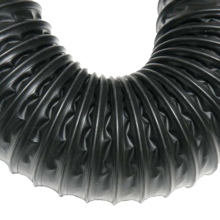 The “Thermoplastic Flex Medium-Duty” flexible hose is a great general all-purpose thermoplastic hose for medium-duty applications. This flexible hose is made from thermoplastic rubber. Thermoplastic rubbers are a class of copolymers that possess both thermoplastic and elastomeric properties, generally made from a mix of plastic and rubber. Thermoplastic rubber products have a successful track record in a wide range of automotive, industrial and commercial applications. These rubber hoses have reduced weight, lower costs, consistent performance, and are recyclable, unlike thermoset rubber compounds. Thermoplastic rubber ducts exhibit durability to extreme temperature and chemical exposure while offering excellent flexibility and abrasion resistance.
