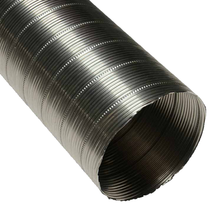 This question assumes that metal ductwork cannot be flexed and that is incorrect. Our stainless ducting is flexible. The flexibility of stainless ducts is a function of their material makeup. They do not behave like vinyl flex ducts that cannot maintain their shape when flexed. A standout feature of our stainless-steel ductwork products is their semi-rigid design.The semi-rigid design makes these flexible hoses self-supporting ducting, which is essential for ducting applications that require extra durability and stability. With a flexible SS hose you can bend the stainless hose in any direction that the application demands and the hose will remain in place without the need of an additional support system. This feature makes flexible SS hoses an economically efficient choice for heavy-duty applications that will require a hose to weave its way to an endpoint. In fact, that self-supporting ducting can be manipulated and put into position by hand means that you do not need potentially costly added elbows and connectors to create turns, bends, or shapes in your ductwork.