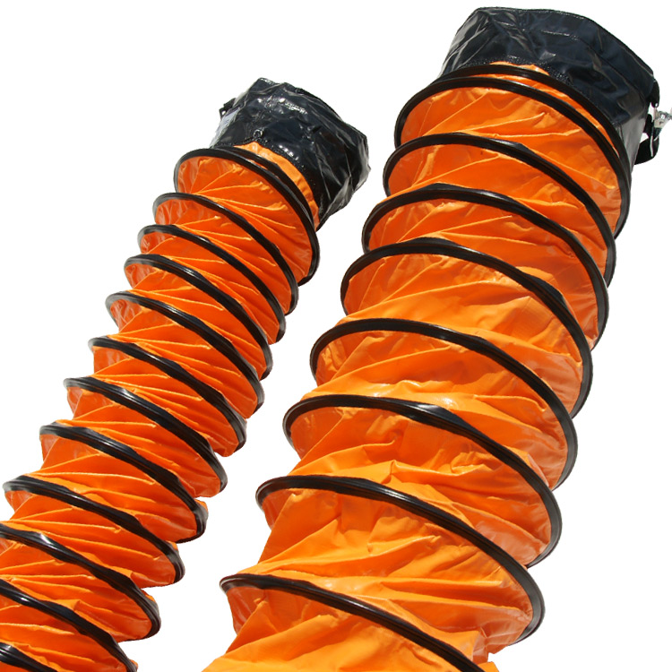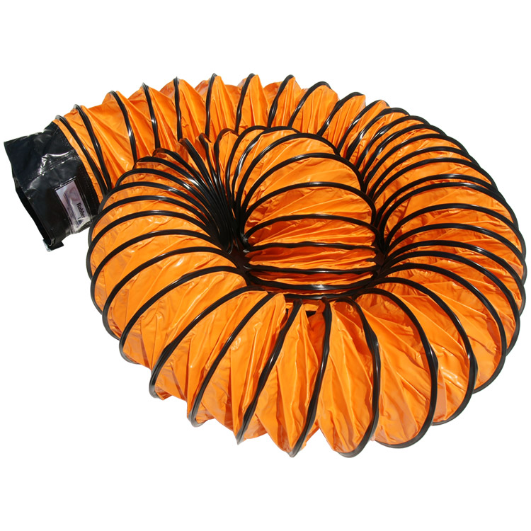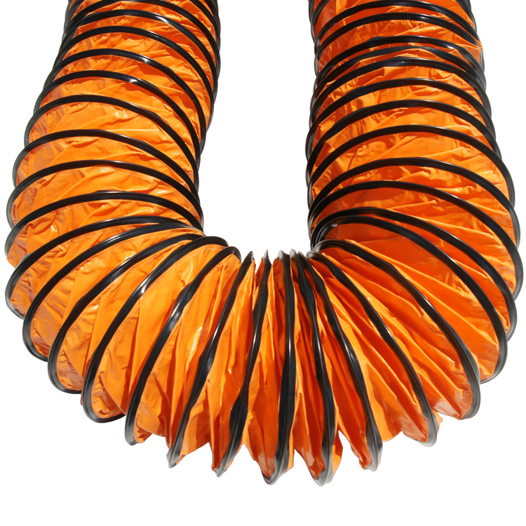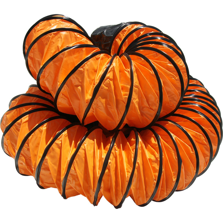 The “Air Ventilator Orange” is a cost-effective and high quality air ventilation duct for applications that involve air movement. These orange-bodied hoses are made from polyester fabric that is coated with PVC vinyl. The body of this air duct hose is reinforced by a spring steel wire helix. The helix is designed to provide this flexible ducting with an enhanced physical frame. In addition to the protection of the wire helix, the external section of the hose is protected by a wear-strip. If your application involves this air ventilation duct being dragged across the ground or other surfaces, the wear-strip will guard the body of the hose from most physical abrasions.