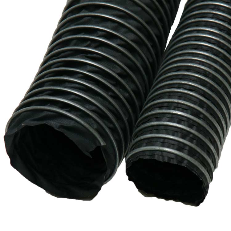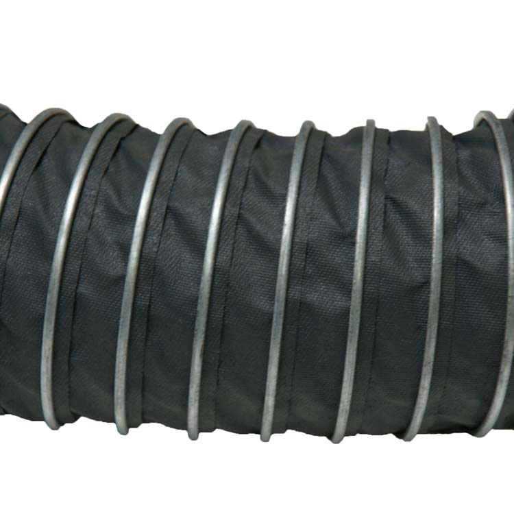 The “Spiral-Lock (Neoprene) 250” fume ducting comes in a standard length of 25 feet with plain cut ends and a black finish. Internal diameter sizes for this flex duct range from 3 to 18 inches. This hose is also quite compressible; larger sizes (7 inch and up) have a compression ratio of 10 to 1, which means that a 25 ft length of hose could compress down to 2.5 feet. This flexibility makes the product easy to handle in small crowded environments where maneuverability is a must. This product is great for use in fume applications such as pollution control, landfill venting, welding, and other vehicle exhaust systems. If you have questions or need additional information, please do not hesitate to give one of our ducting specialists a call today!