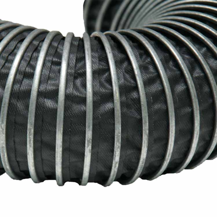 The “Spiral-Lock (Neoprene) 250” high temperature duct operates at both high and low temperatures. This hose has a working temperature range of -65 degrees to +250 degrees Fahrenheit. The neoprene coating allows the high-temp exhaust hose to maintain its flexibility over a broad range of temperatures while resisting degradation more than natural or synthetic rubbers. The combination of the abrasion resistance of Neoprene and the exterior metal clip makes this hose ideal for vehicle exhaust applications that may see external abrasion. If this high-temp exhaust hose requires even more external protection, a polyurethane clip cover designed to protect the helix is also available.