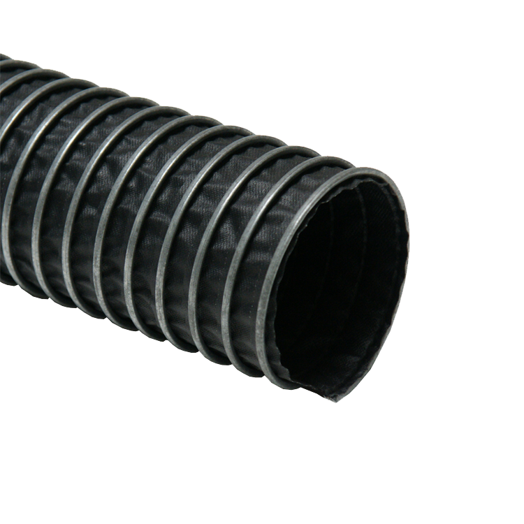 The “Spiral-Lock (Neoprene) 250” is a high temperature duct that is made from single-ply neoprene coated polyester fabric that is mechanically crimped in a continuous process. This product is coated with Neoprene rubber and is recommended for fume ducting applications. Neoprene is a synthetic rubber (produced by the polymerization of chloroprene) and offers good chemical resistance and flexibility over a wide range of temperatures. This flex duct’s fabric is locked around a coated steel wire by a metal strip which is formed into a clip. This metal clip acts as a wear-strip that protects the integrity of the “Spiral-Lock (Neoprene) 250” and provides excellent abrasion resistance. This hose is also extremely flexible, making it ideal for hard to reach areas that require ventilation.