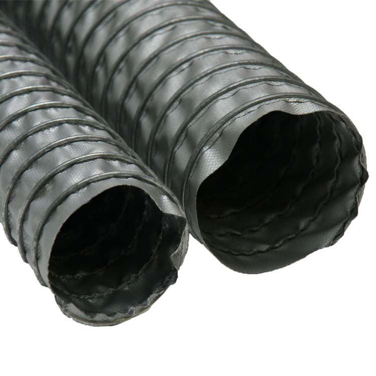 The “Spiral-Lock (Silicone 1P) 550” is a single-ply silicone coated fiberglass fabric high temperature silicone hose that is well suited for fume applications. The silicone coating of this flex hose gives this product useful properties such as flexibility, tear strength, and resistance to extreme temperatures. The hose fabric is locked around a coated steel wire by a metal strip that is formed into a clip. This metal clip acts as a wear-strip that protects the integrity of the “Spiral-Lock (Silicone 1P) 550” and provides excellent protection against external abrasion. Also, the fiberglass fabric makes this an extremely flexible option that is great for when you need a fume exhaust duct in hard to reach areas.