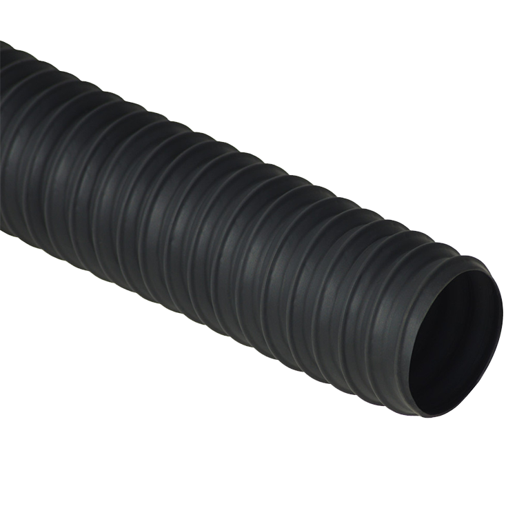 The “Thermoplastic Flex Extra Light-Duty” rubber duct comes in a standard length of 25 feet with plain cut ends and a black finish. Internal diameter sizes for this flexible duct range from 2 to 6 inches. This is also the most compressible duct from of our line of thermoplastic hose products with a 6 to 1 compression ratio. The lightweight makeup of this hose makes it ideal for light duty air, dust, and fume applications such as A/C ventilation, electric panel cooling, stereo speakers, heater/defroster hose, and textile mills. If you have questions or need additional information, please do not hesitate to give one of our ducting specialists a call today!