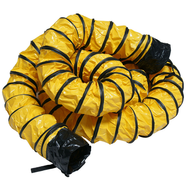 The “Air Ventilator Heavy-Duty” ventilation hose is a highly durable air ventilation duct that is well suited to industrial air movement applications. This flexible ventilation duct is made with a thick PVC vinyl coated polyester fabric that is reinforced with a spring steel wire helix and external wear-strip. These physical features make it ideal for withstanding the rigors of industrial ventilation ducting. The spring steel wire helix in each of these heavy-duty ventilation ducts gives them a stronger form and a degree of flexibility. It can help prevent the air hose from being crushed or deformed. The external wear-strip on the outside of this durable air ventilation hose is meant to provide an added layer of protection against physical abrasion. With these great structural components, this heavy-duty flexible ventilation duct will last for longer periods of time.