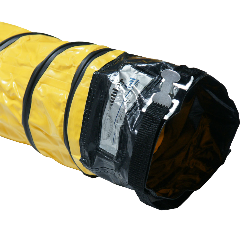 These air ventilation ducts come in various different ID sizes. They come in the sizes of 6”, 8”, 12”, 14”, 16”, and 24”. The standard length of this hose is 25 feet. It is a very easy hose to install. Each of these hoses comes with ends that have belted cuffs that allow for efficient easy installation, eliminating the need for cumbersome clamps. In terms of appearance, this ventilation hose is distinguishable by its yellow body fabric and black external wear-strips. This flexible ventilation duct is suitable for use in applications such as air duct cleaning, AC ventilation, cold air supply, dehumidification, humidity control, mining, and more.