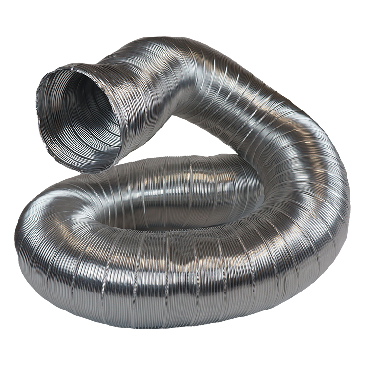 The Aluminum Flex 280 – Compressible comes prefabricated in a variety of different inside diameter (I.D.) sizes: 3″, 4″, 5″, 6″, 8″, 10″, and 12″. The walls of this flexible metal tubing are 0.1 to 0.11 mm. thick, and it has an I.D. tolerance of 0 to 0.1 inch. Its end finishes are plain cut, and it comes in a classic, metallic-silver colorway. This flexible metal hose is also semi-rigid, which means that, once you bend it into a certain position, it will stay that way without any added support. Of course, you can bend it again to reform the duct into a different position. In sum, it’s likely that you will not need to use any accessories such as elbows to fit your Aluminum Flex 280 – Compressible into looping or bent positions.